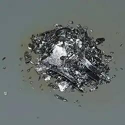 Иод при комнатной температуре представляет собой темно-фиолетовые кристаллы со слабым блеском. При нагревании под атмосферным давлением он сублимируется (возгоняется), превращаясь в пары фиолетового цвета; при охлаждении пары иода кристаллизуются, минуя жидкое состояние. Этим пользуются на практике для очистки иода от нелетучих примесей.[12]:340