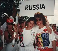 Чести открыть соревнования удостоилась 11-летняя петербургская школьница Светлана Конокотина, которой еще предстоит вскоре бежать километр с олимпийским факелом по дорогам Америки, так как она выиграла конкурс рисунков предстоящей Олимпиаде в Атланте. | |