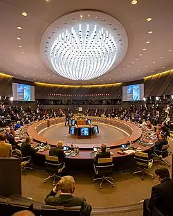 Организа́ция Североатланти́ческого догово́ра, НА́ТО, Североатлантический Альянс (англ. North Atlantic Treaty Organization, NATO; фр. Organisation du traité de l'Atlantique Nord, OTAN) — военно-политический блок, объединяющий большинство стран Европы, США и Канаду. Основан 4 апреля 1949 года в США, «чтобы защитить Европу от советского влияния». Тогда государствами-членами НАТО стали 12 стран — США, Канада, Исландия, Великобритания, Франция, Бельгия, Нидерланды, Люксембург, Норвегия, Дания, Италия и Португалия. Это «трансатлантический форум» для проведения странами-союзниками консультаций по любым вопросам, затрагивающим жизненно важные интересы его членов, включая события, способные поставить под угрозу их безопасность. Одной из декларированных целей НАТО является обеспечение сдерживания любой формы агрессии в отношении территории любого государства-члена НАТО или защиту от неё.