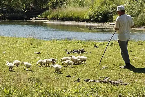 Наш пастух в Переславищах давно пасет и все немой, только свистит. А в Заболотье по росам играют и пастух на трубе и подпасок на жалейке, что я за грех считаю, если случится проспать и не слыхать его мелодии на дудочке, сделанной из волчьего дерева с пищиком из тростника и резонатором из коровьего рога. Наконец, однажды я не выдержал и решил сам заняться болотной музыкой. Заказал жалейку. Мне принесли. | |