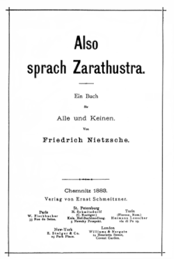 «Так говорил Заратустра. Книга для всех и ни для кого» (нем. Also sprach Zarathustra. Ein Buch für Alle und Keinen) — философский роман Фридриха Ницше, три части которого изданы в 1883 году. Ницше намеревался написать ещё три части, но закончил только одну — четвёртую (в 1885).