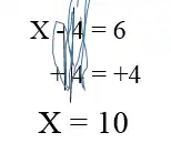 So, for the problem: □ - 4 = 6... we will have to do some math! We need to add positive 4, to the negative 4 on the left handside of the equation. When you add a number to another number (in which the solution becomes 0), you have cancelled out that number. But, you cannot just cancel out 4, and be done with it! You have to also add 4 to the number 6 on the righthand side of the equal sign, which brings out a golden rule in Algebra: 'To keep the balance, what we do to one side of the "=" we should also do to the other side!".