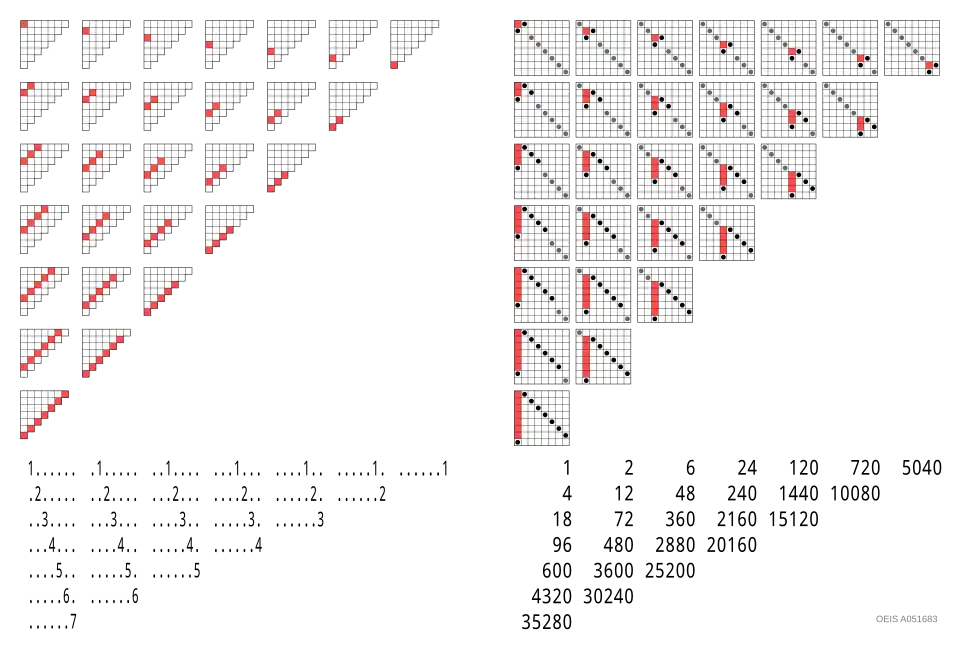 For the last permutation in each array the corresponding permutation matrix is also shown.