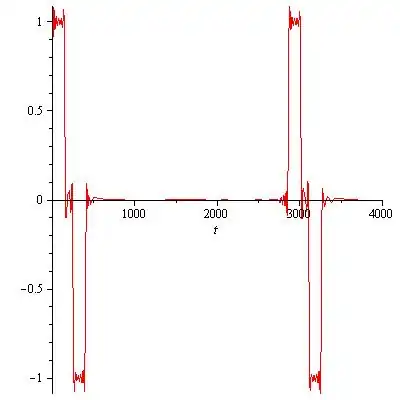 - Shift right or left by an amount such that the resulting periodic function is an odd function. Here is a plot of shifting it to the left half way between the +1 and -1 pulses. This is a shiift of b= 200 μs. The new funnction is . A plot follows: