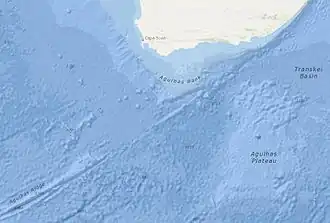 The Agulhas Plateau, in the image on the right, is limited by the Agulhas Passage to the north; by the Agulhas Basin to the west; and by the Transkei Basin to the north-east.[10]