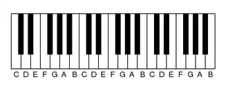 The notes of a piano keyboard. Click on the image for a full size version which you can freely re-use and modify. Print it and use it for your lessons, integrate it into your pages on Wikiversity, or use it in other learning resources and websites. Use the links below to find more images like this one.