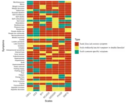 The following section contains a brief overview of treatment options for depression and a list of process and outcome measures for adolescent depression. The section includes benchmarks based on published norms and on mood samples for several outcome and severity measures, as well as information about commonly used process measures. Process and outcome measures are used as part of the process phase of assessment. For more information on differences between process and outcome measures, see the page on the process phase of assessment.