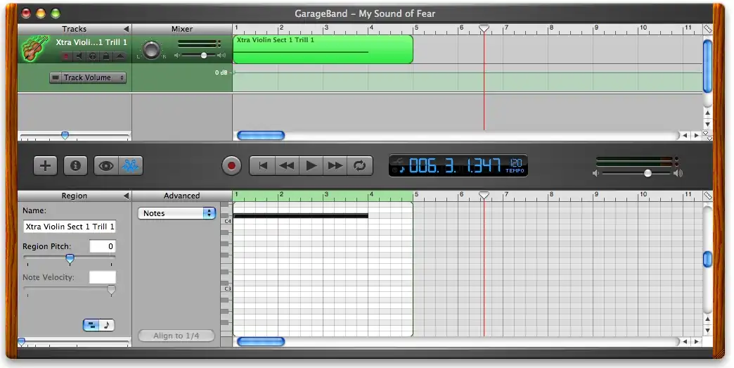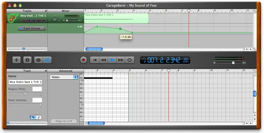 Once you have sent me your project file for creating the "Sound of Fear" using a violin trill, etc., you should try to create other moods using only a single note with GarageBand .