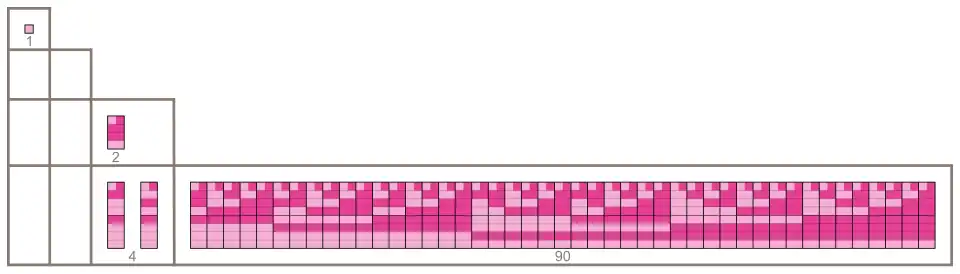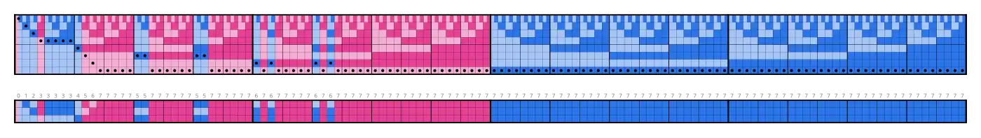 Row indices on the left (🌊) are the arity, on the right (💧) the adicity. Entries on the left are the sums of columns on the right.