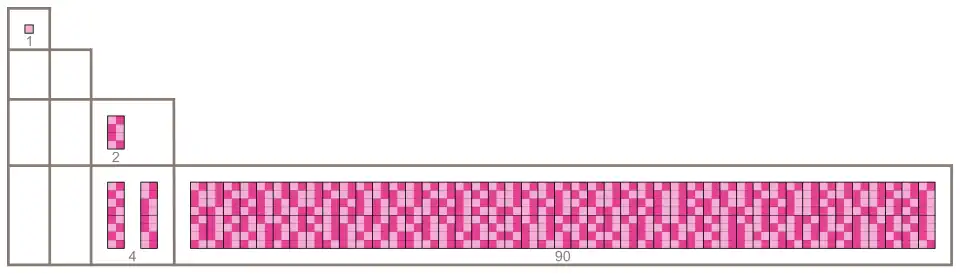 The number triangles in the following boxes show the numbers of Boolean functions by arity/adicity and valency.