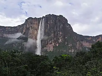 The Atlantic Ocean and the Caribbean Sea form a coastline along the northern side of the tropical region, gradually going southeast toward an eastward "land's end" in Brazil. Between South America's easternmost point and Lake Maracaibo is the Guiana Highlands region, where there are some fairly high, though flat-topped, mountains. The mountains provide an ideal environment for waterfalls: Angel Falls, which comes off the side of one of these flat-topped mountains, is the highest waterfall in the world.