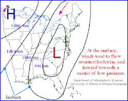 - (North America: Low Pressure system moves inward toward the center and counterclockwise)