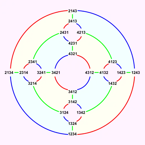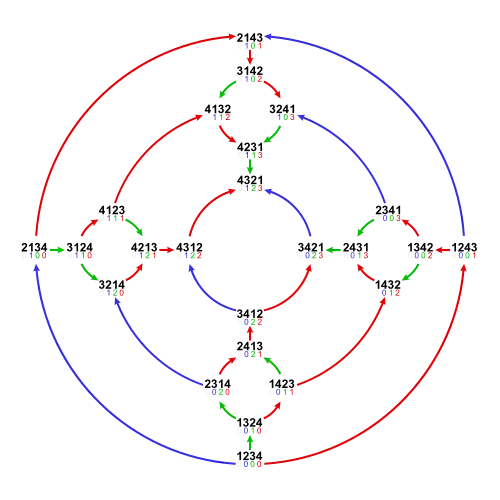 The following sortable table shows the 24 permutations of four elements with their place-based inversion sets, inversion related vectors and inversion numbers.