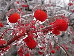 Clear ice refers to a solid precipitation which forms when air temperature is between 0 °C (32 °F) and -3 °C (27 °F) and there are supercooled, relatively large drops of water (from freezing fog).