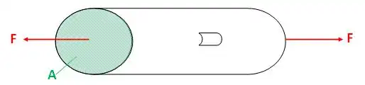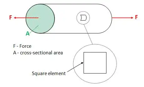 Therefore the force applied at either end has produced a tensile stress, , on the element, as shown below: