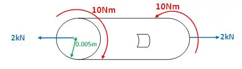 In this case, the rod is subjected to a torque (twisting force) at either end: