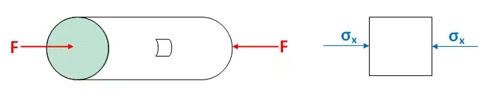 Similarly, a Compressive force on the rod would induce a compressive stress on the square element, as shown below: