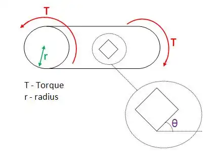 Take to be 45 degrees. How do you imagine the element would react to the torque in this case? This one is more difficult to imagine. It would stretch as shown below: