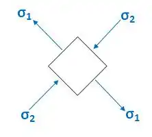 Note that there is no shear stress acting on the element at this orientation. When there is no shear stress acting on the element, the element is called the "principal element", and the 2 stresses on the element and are known as the principal stresses.