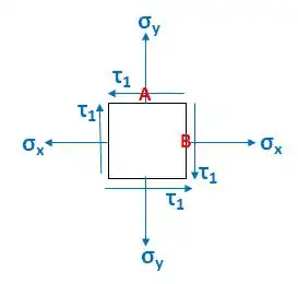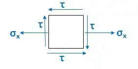 Although it may be more difficult to visualize, there is also shear stress on the horizontal edges of the square element. The square element is drawn as follows:
