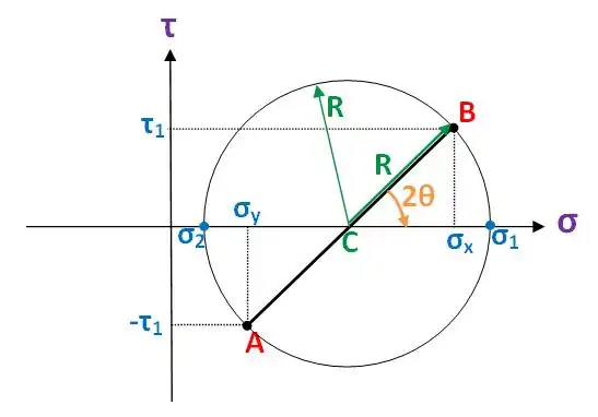 Finally, the principal stresses and occur where the circle meets the -axis. (Notice that these points have zero shear stress.)