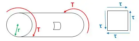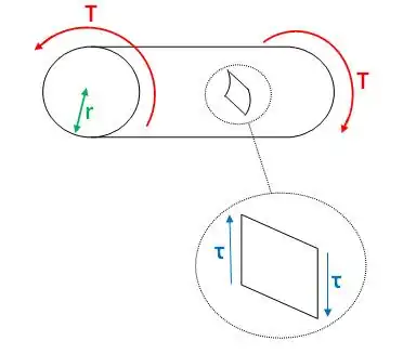 If there is both a tensile force and torque applied at either end, you superimpose the two solutions and the square element would look like this: