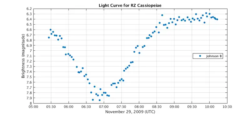 Measurements of the change in brightness of a variable star are plotted to produce a light curve.