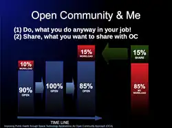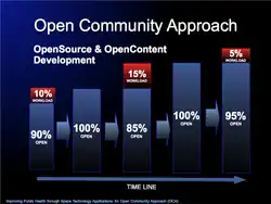 Open Community Approach is a generalization of the concept of OpenSource and OpenContent to other collaborative effort. The term “open” for an open community refers to the opportunity for anyone to join and contribute to the collaborative effort. The direction and goals are determined collaboratively by all members of the community. The resulting work (“product”) is made available under a free license, so that other communities can adapt and build on them.