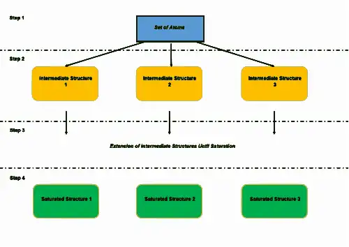 A series of stochastic generators was reported by Jean-Loup Faulon. The software, MOLSIG,[21] was integrated into this stochastic generator for canonical labelling and duplicate checks.[22] As for many other generators, the tree approach is the skeleton of Jean-Loup Faulon's structure generators. However, considering all possible extensions leads to a combinatorial explosion. Orderly generation is performed to cope with this exhaustivity. Many assembly algorithms, such as OMG,[23] MOLGEN and Jean-Loup Faulon's structure generator[24], are orderly generation methods. Jean-Loup Faulon's structure generator relies on equivalence classes over atoms. Atoms with the same interaction type and element are grouped in the same equivalence class. Rather than extending all atoms in a molecule, one atom from each class is connected with other atoms. Similar to the former generator, Julio Peironcely's structure generator, OMG, takes atoms and substructures as inputs and extends the structures using a breadth-first search method (figure 2). This tree extension terminates when all the branches reach saturated structures.