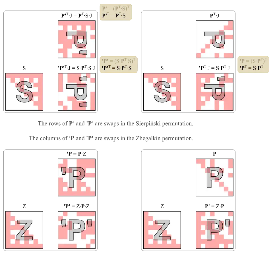 The compression matrices are arranged in a 2×2 array. Adjacent rows/columns are swaps in the Sierpinski/Zhegalkin permutation.