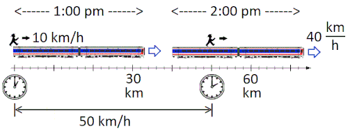 The figure shows a Man moving relative to Train with velocity, , where the velocity of the train relative to Earth is, is the velocity of the Train relative to Earth. The velocity of the Man relative to Earth is,
