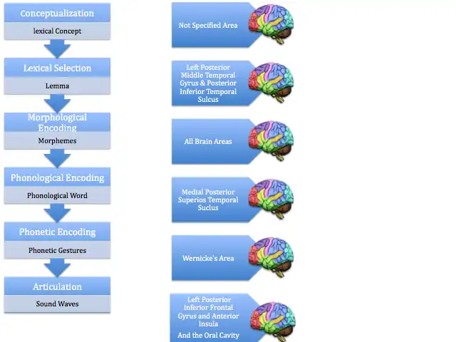 The human brains ability to produce speech is a well researched area of psycholinguistics. Although there is so definitive map that outlines the regions clearly it appears that science is moving in the right direction by use of fMRI and lesion studies. The neural precision needed to produce even basic speech activates many regions in the brain. Broca’s area and Wernicke’s area are the most mentioned but newer studies have placed emphasis on other regions to aid in speech production. Without the combined efforts of the physiological, neural, and cognitive processes humans would not be able to communicate in such effective ways. It is also important to understand the mechanisms of action by recording how damages or lesions affect the brain. At the completion of this chapter the reader should have a better understanding of the neural components of speech production.