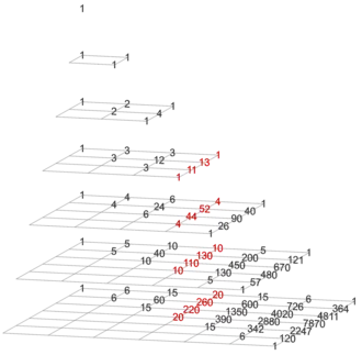 The layer sums (and row sums of these triangles) are sequence Daisy .