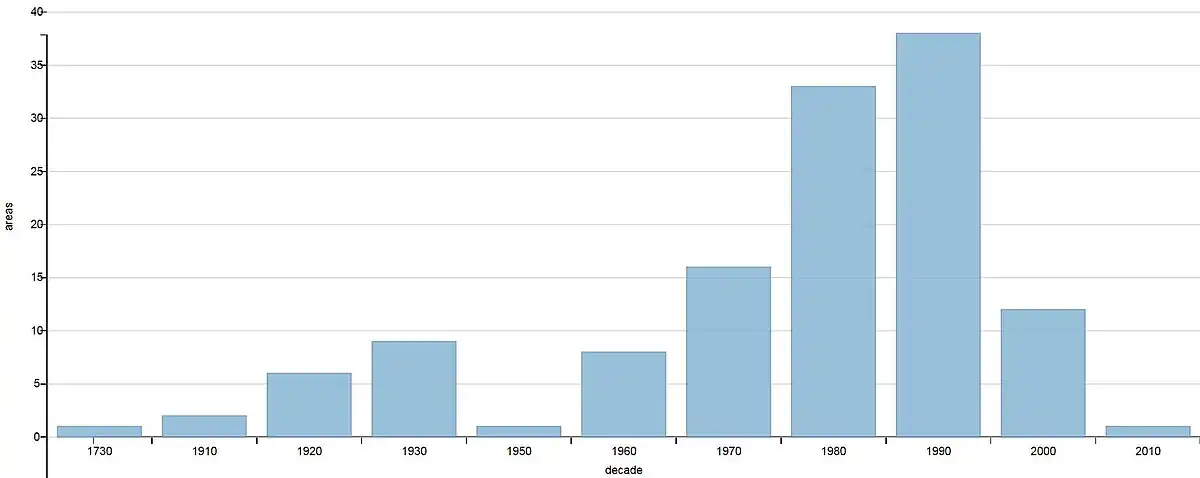 Protected areas by the date of foundation
