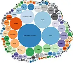Let's construct a bubble diagram showing the ratio of the number of universities in different countries of the world.