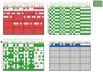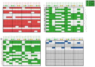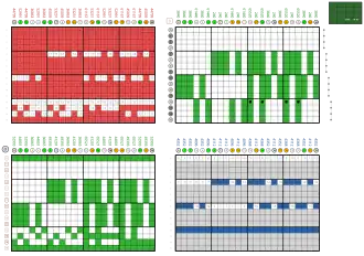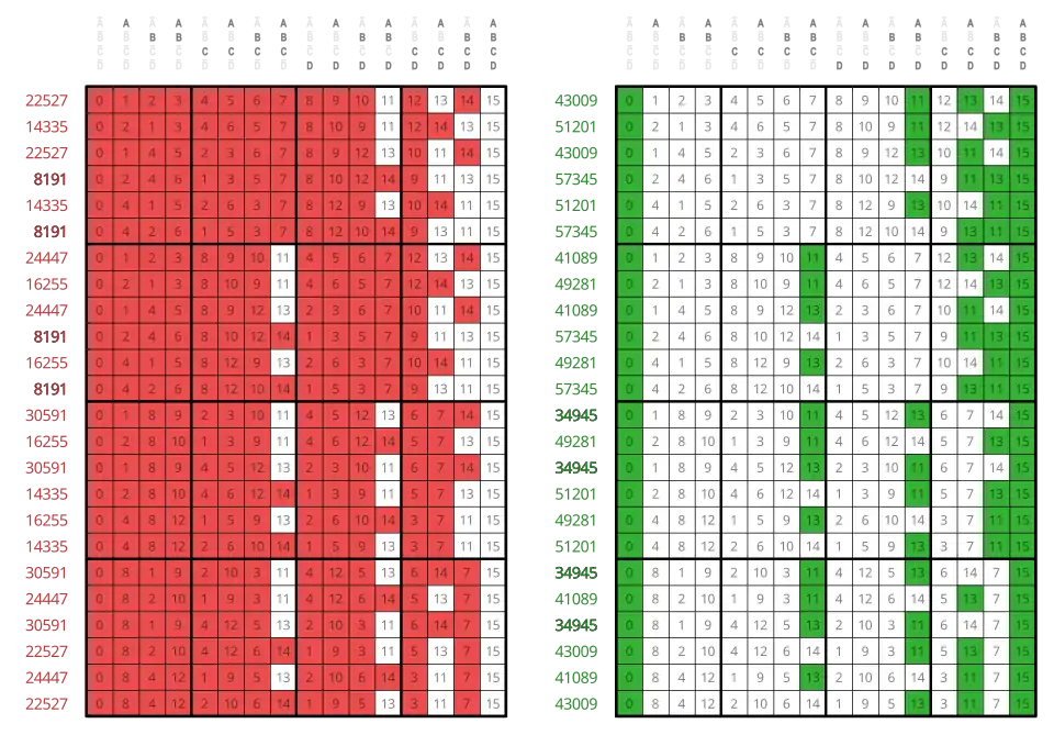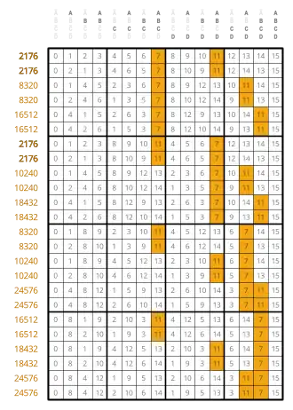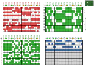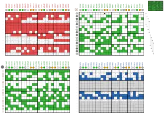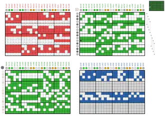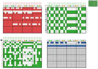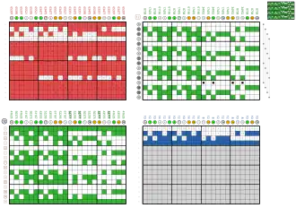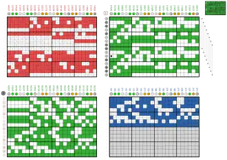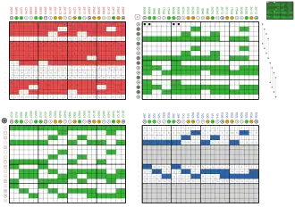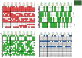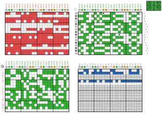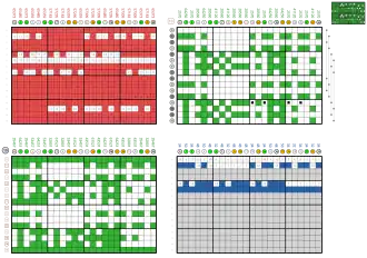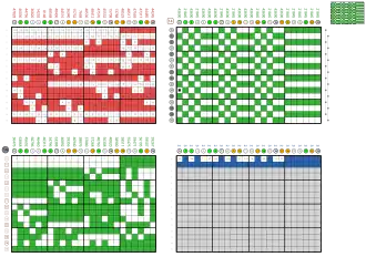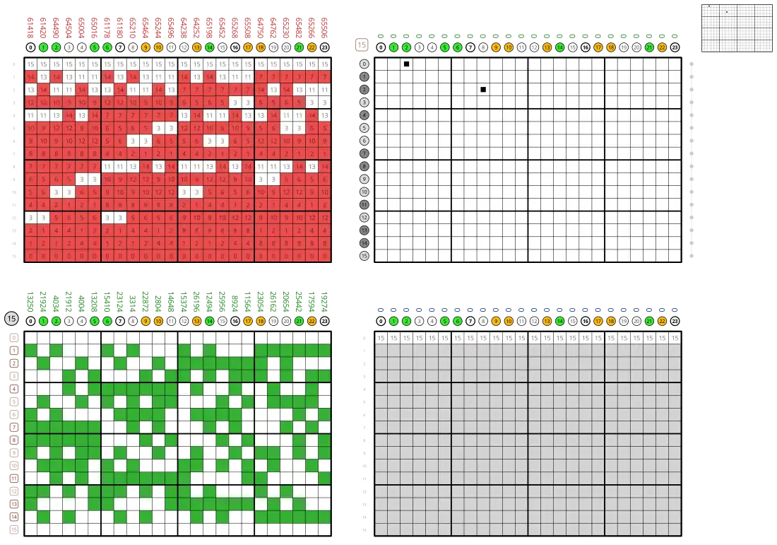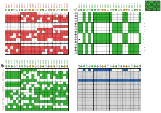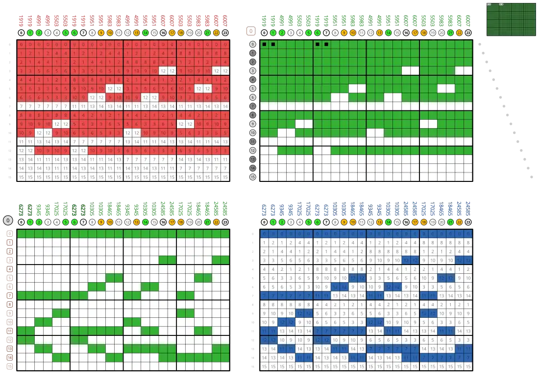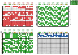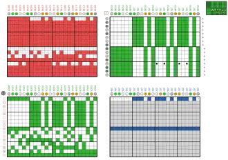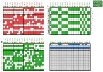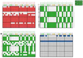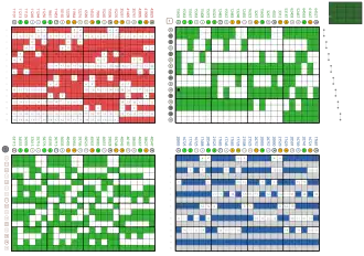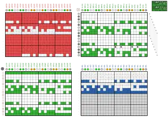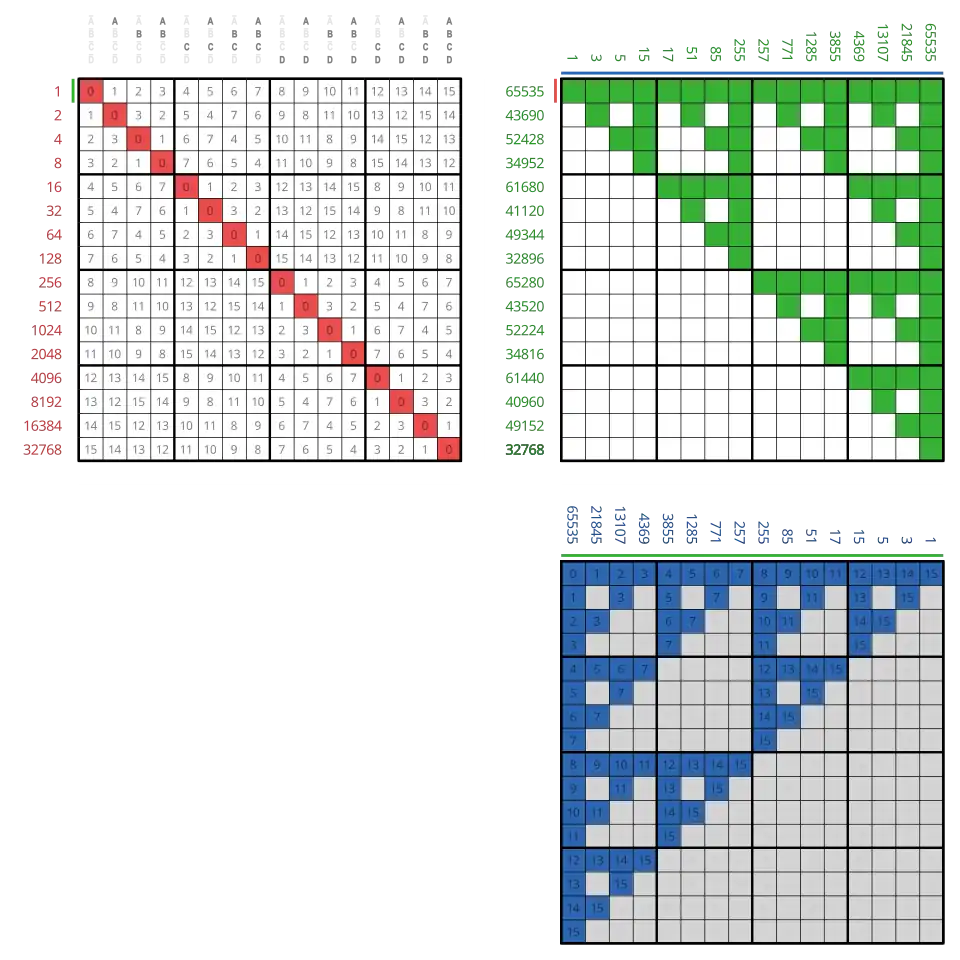 The rows of these 24×16 matrices are Boolean functions in the same faction. (Compare this matrix.)