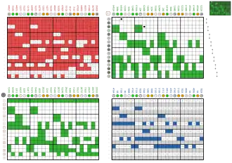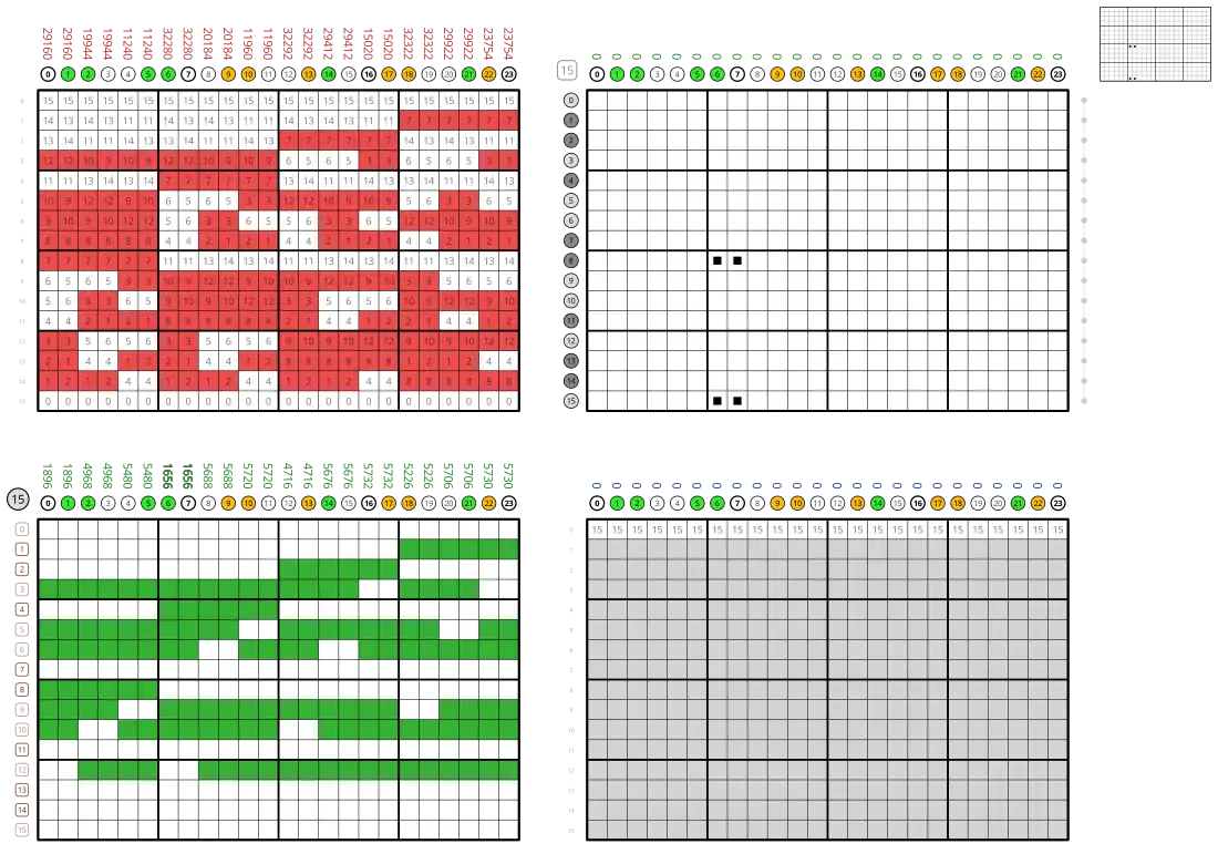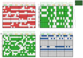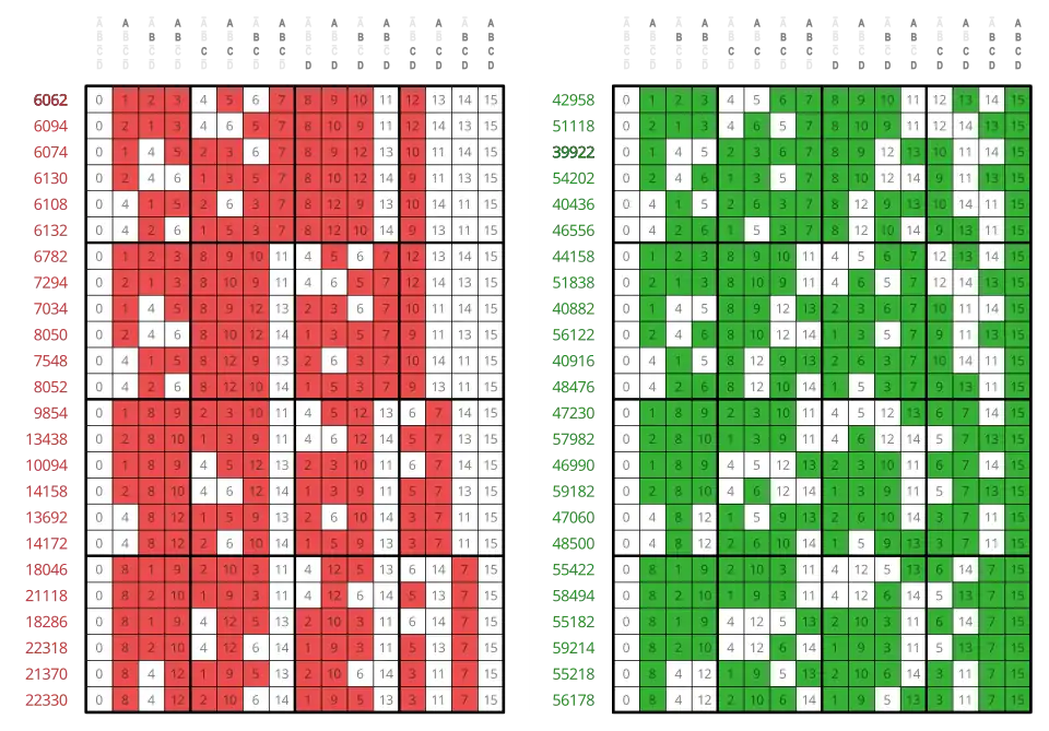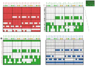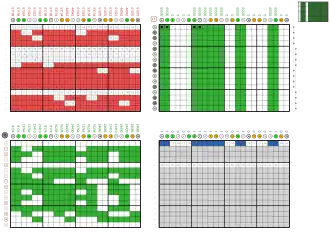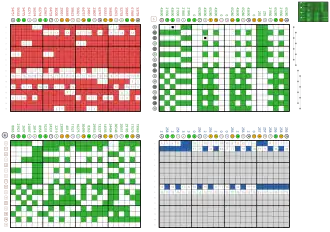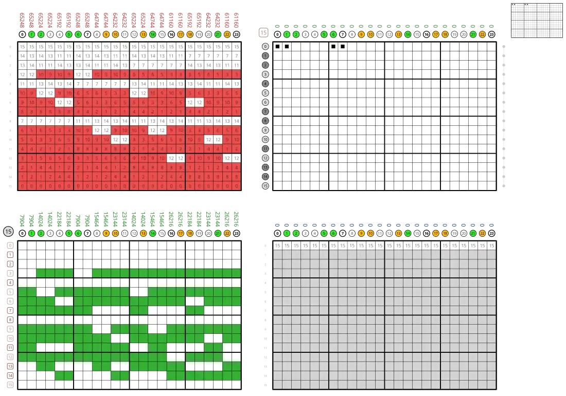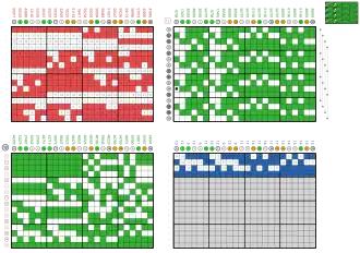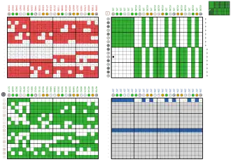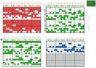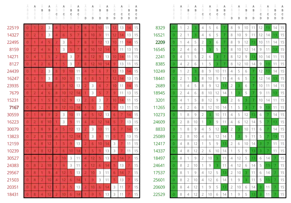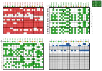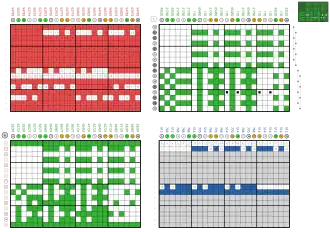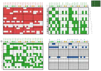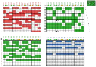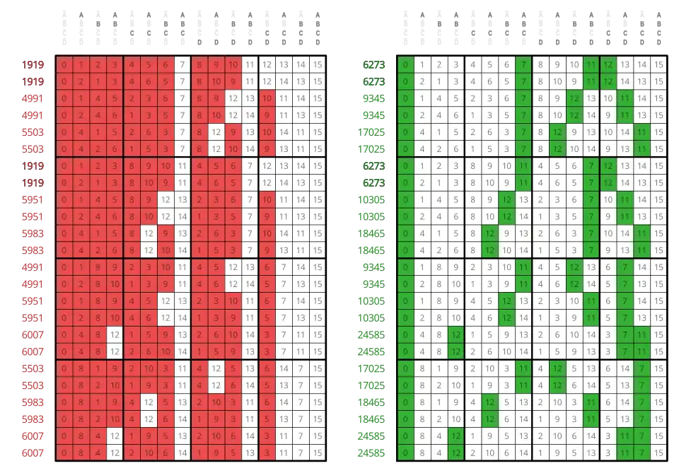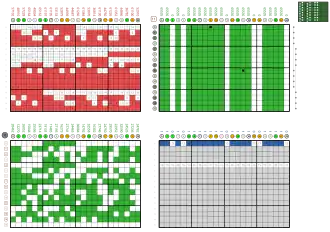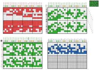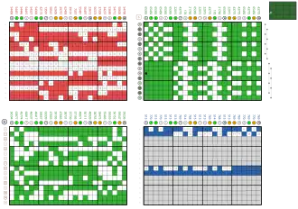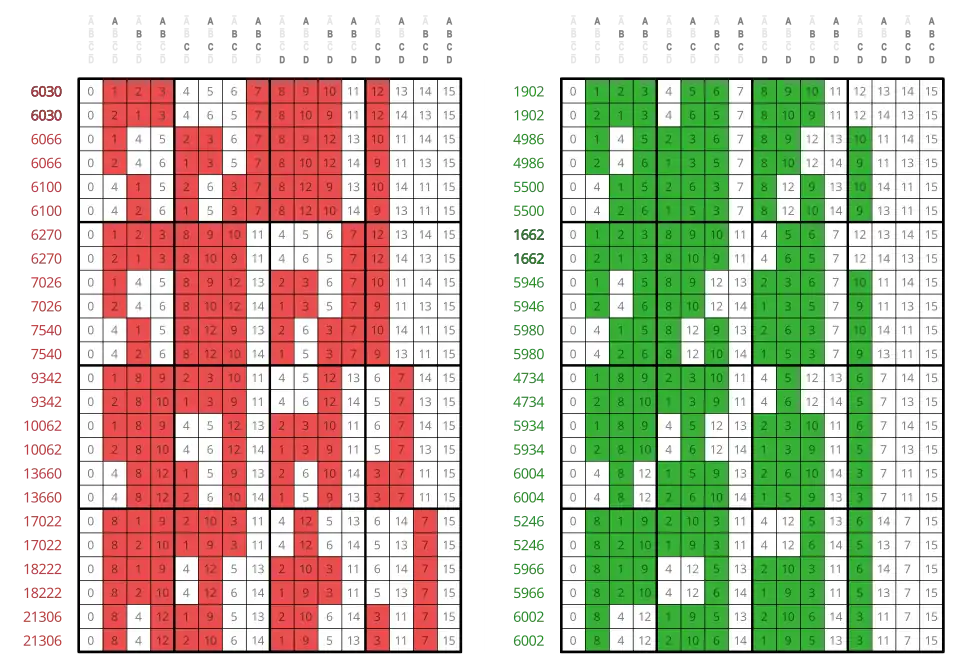 The rows of these 24×16 matrices are Boolean functions in the same faction. (Compare this matrix.)