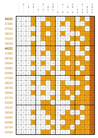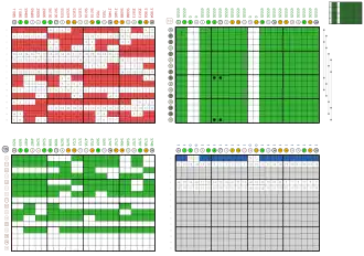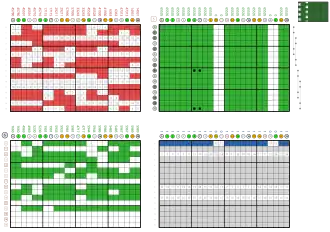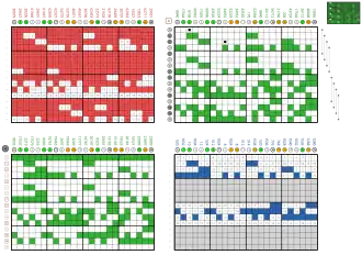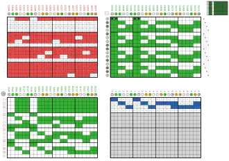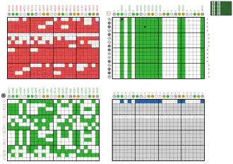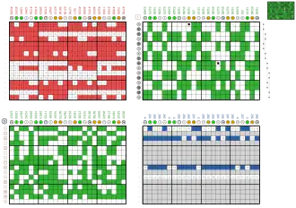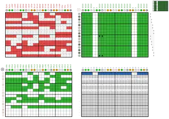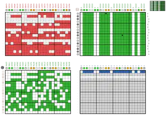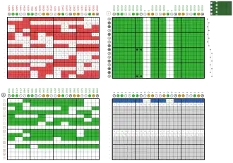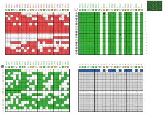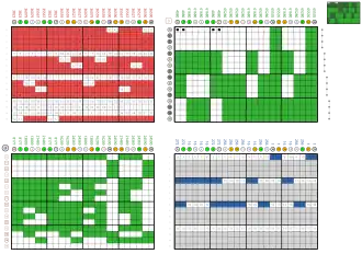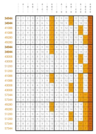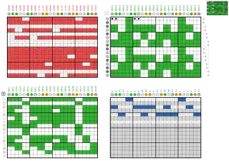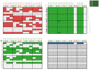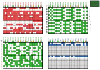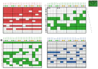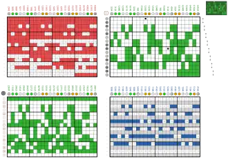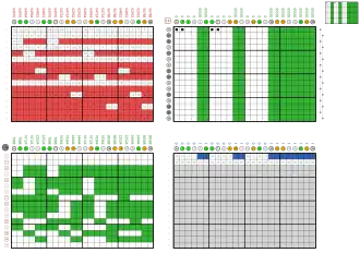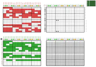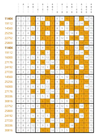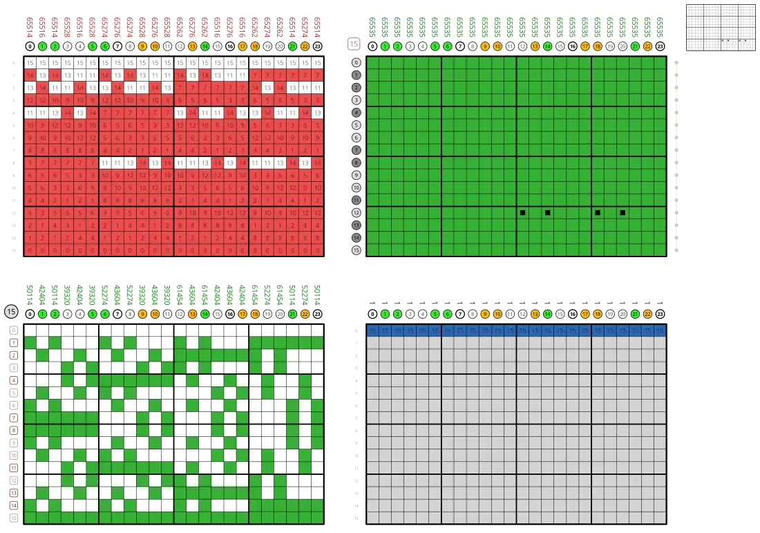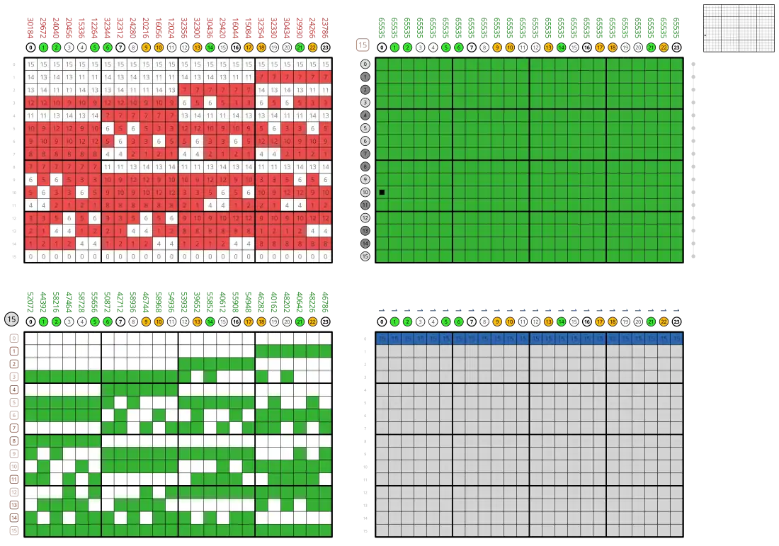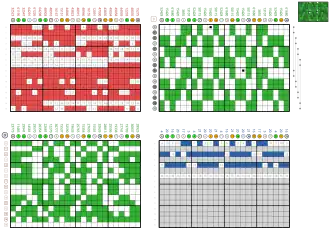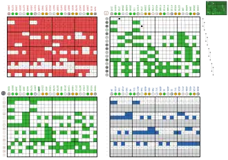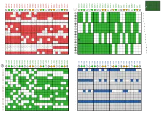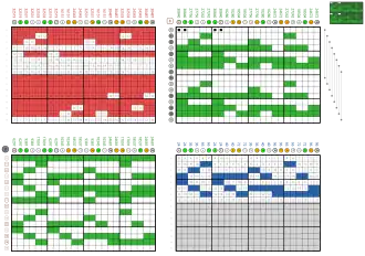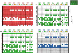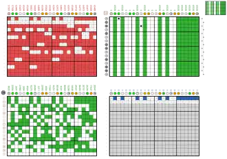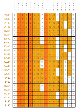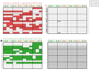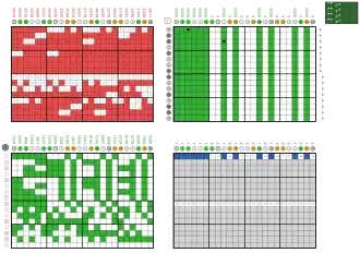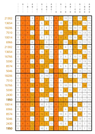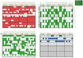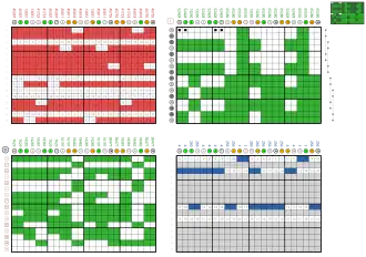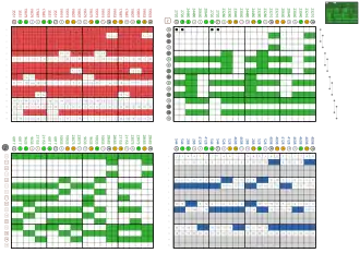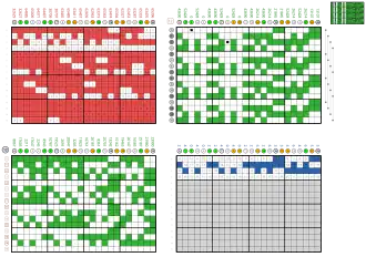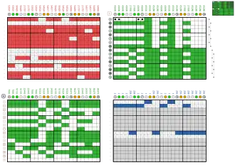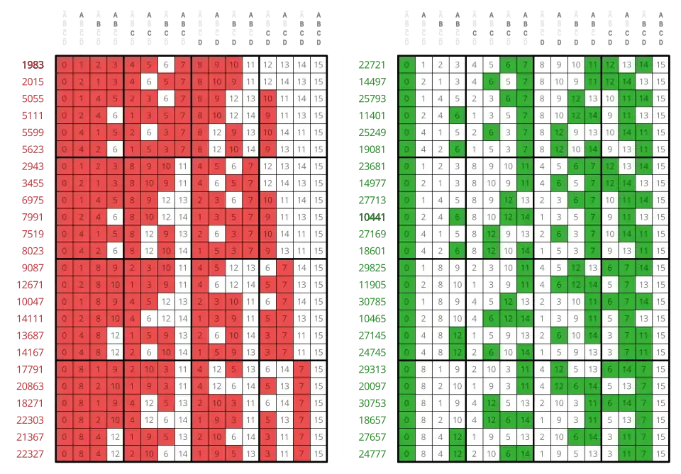 The rows of these 24×16 matrices are Boolean functions in the same faction. (Compare this matrix.)