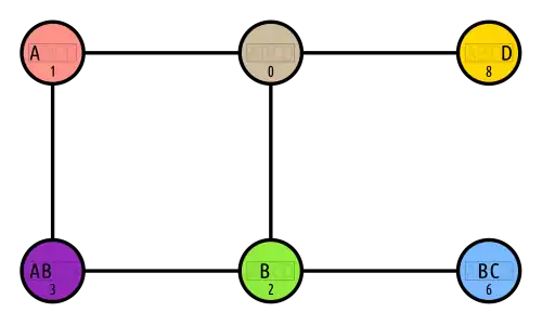 ![]() The truth table of bundle AB is 0111 and that of bundle D is 01. BEC 41, row (11,2) |