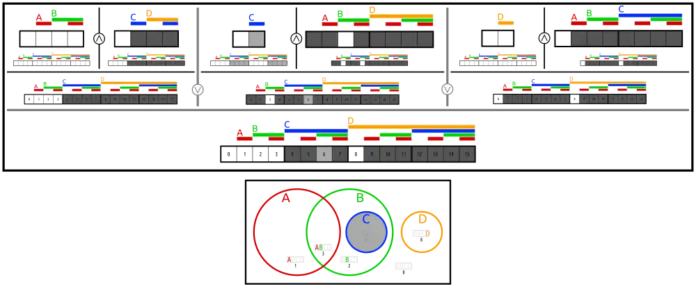 ![]() the four cells of bundle AB (outside of sets C and D) |