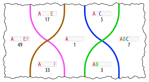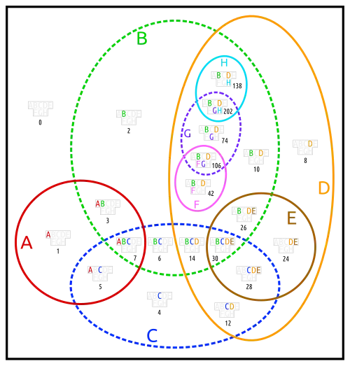 Without the small bundle (F, G, H) the surrounding one would be just the red-yellow-brown Euler diagram (A, D, E), as in basori.