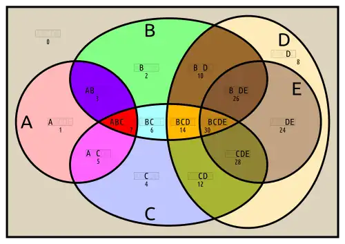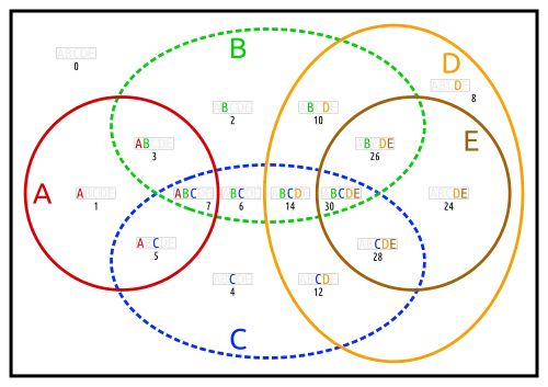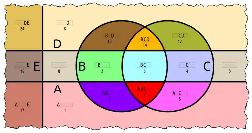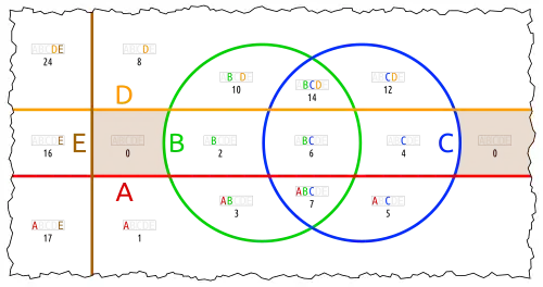This representation is also inflated. Only the red-yellow-brown Euler diagram (A, D, E) matters.