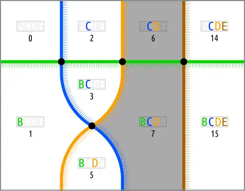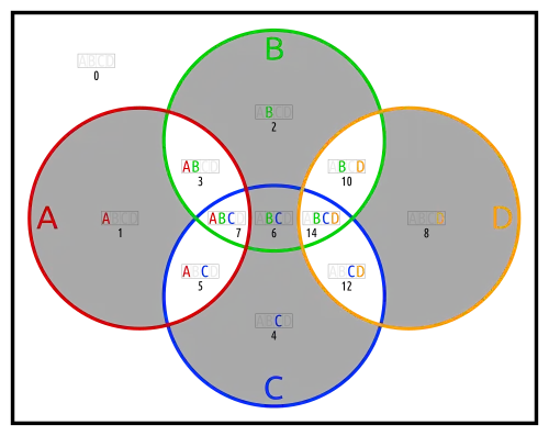The result is a 3-circle Venn diagram without gapspots, i.e. the tautology. | |