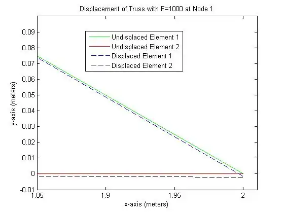 For the 3-bar truss example in K.2008.2 on pg. 43, solve this problem, but with non-zero prescribed disp dofs, using your own FE matlab code(not CALFEM). Using the same "connectivity array" given in the same problem statement, provide all of the results, including all of the unknown global disp dofs, force components(reactions), and member forces. Plot the deformed shape superposed on the undeformed shape. Verify the results with CALFEM.