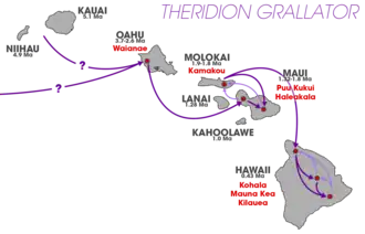 - ↑ Gustavo Hormiga; Miquel Arnedo; Rosemary G. Gillespie (2003). "Speciation on a Conveyor Belt: Sequential Colonization of the Hawaiian Islands by Orsonwelles Spiders (Araneae, Linyphiidae)". Systematic Biology 52 (1): 70–88. doi:10.1080/10635150390132786. PMID 12554442.
