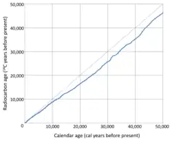 C in the atmosphere has been over the past fifty thousand years. The resulting data, in the form of a calibration curve, is now used to convert a given measurement of radiocarbon in a sample into an estimate of the sample's calendar age. Other corrections must be made to account for the proportion of 14
